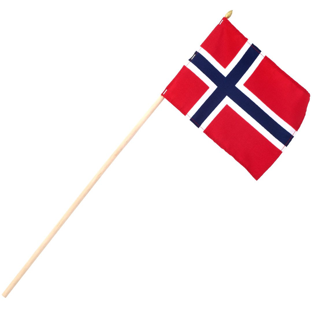 Tradisjonelt 17 mai flagg på trepinne. Størrelse 31 x 43 cm.