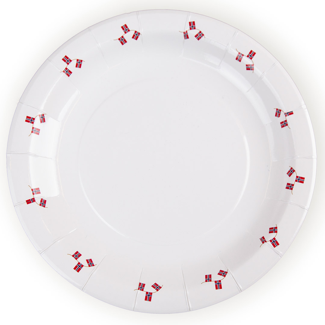 6 stk 17 mai tallerken med Norske Flagg. Materiale: Papir.