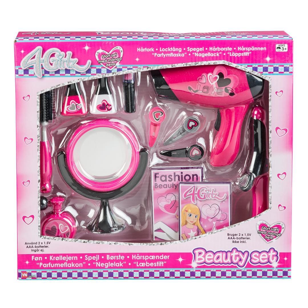 Stort beauty sett Mange deler. Inkl. batteridrevet hårføner. 2 stk. AAA-batterier er ikke inkl.