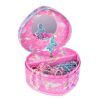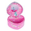 Hjerteformet smykkeskrin med musikk Med opptrekksfunksjon, bevegelig enhjørning og speil. Uten smykker.