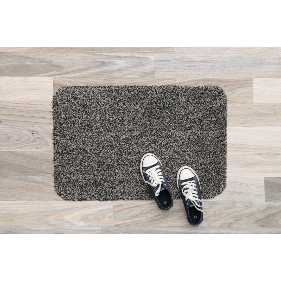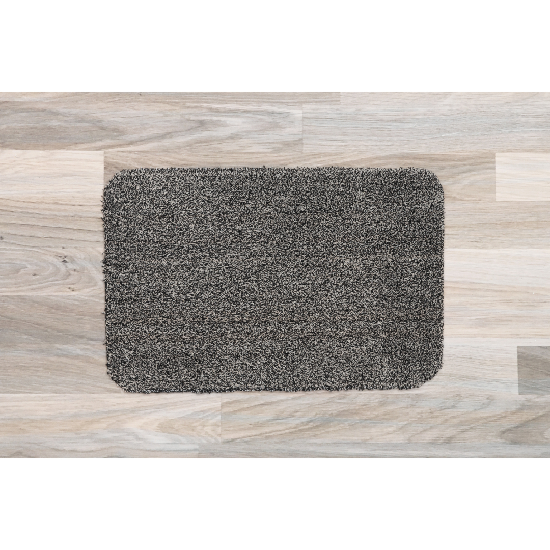 Absorberende matte for å stoppe smuss og fukt ved inngang. Sklisikker TPR-bakside. Størrelse 60 × 90 cm. Materiale: 50 % bomull, 45 % polyester, TPR.