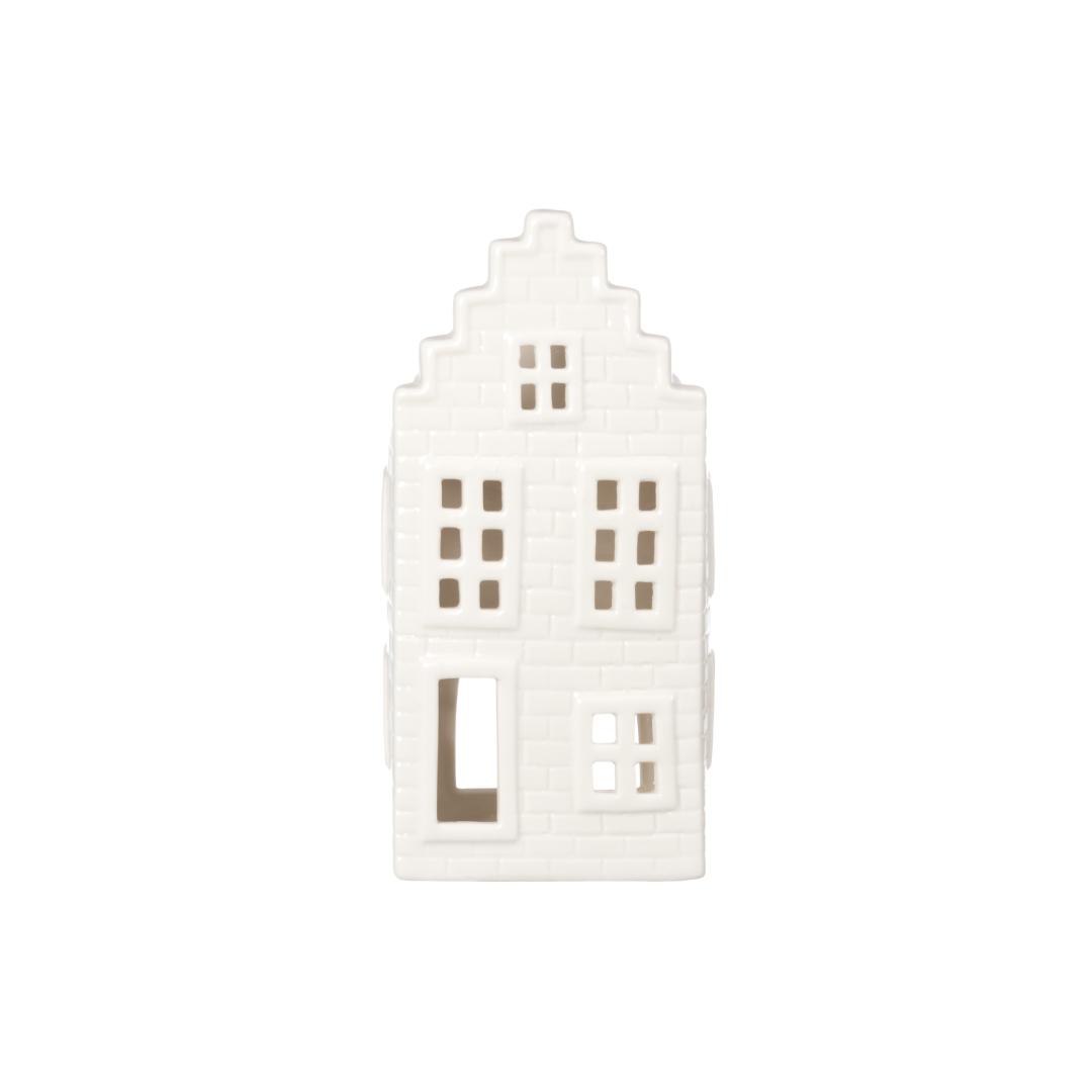 4 Living Collection huslykt Copenhagen hvit 18 cm (variant) er en hvit porselenslykt i husform som gir mykt og hyggelig lys. Den passer like godt på vinduskarmen som på et dekorfat sammen med andre sesongprodukter. Bruk den med stearinlys, LED-lys eller batteridrevne dekorlys for trygg og fleksibel bruk.