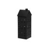 4 Living Collection lykt Hus 50 cm er en svart husformet metalllykt som skaper stemning på gulv, trapp eller sidebord. Den høye formen gir plass til lys som lyser fint ut gjennom åpningene. Lykten kan brukes med vanlige stearinlys, LED-lys og batteridrevne dekorlys, og passer godt til høst- og vinterdekor.