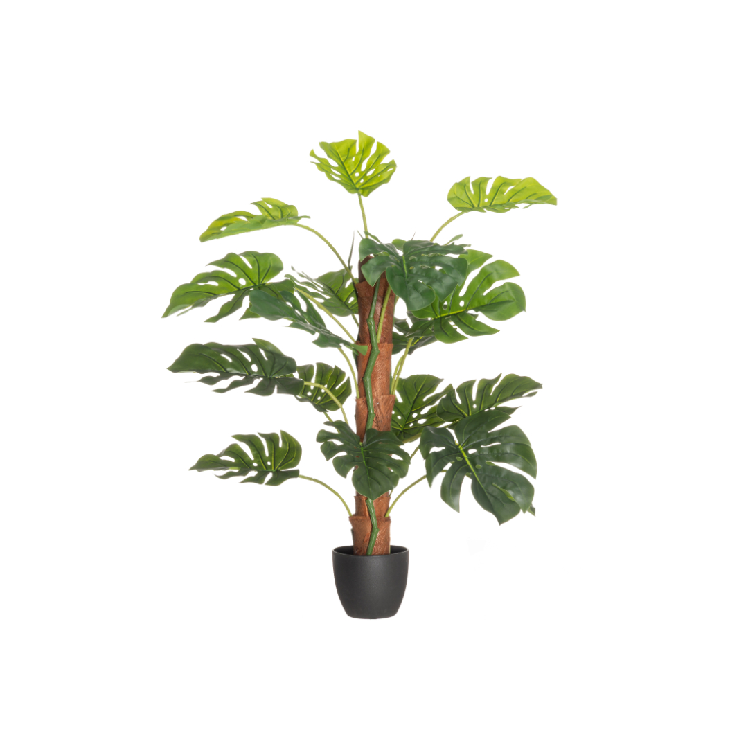 Stor og dekorativ kunstig monstera med støttestang for naturtro uttrykk. Perfekt når du ønsker grønt preg uten vanning og stell. Leveres i potte, klar til plassering.
