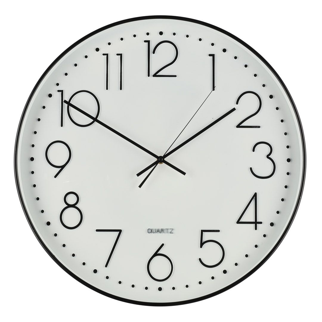 Den stilige veggklokken med plastramme passer inn i alle rom. Veldig tydelig skive og glidene bevegelse på visere. Mål: ?50 cm x 5 cm.