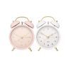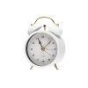 Klassisk vekkerklokke med metallkropp og detaljer i gullfarge. Stillegående «sweep» urverk. Drives av 1 × AA-batteri (ikke inkludert). Leveres i hvit eller lys rosa variant.