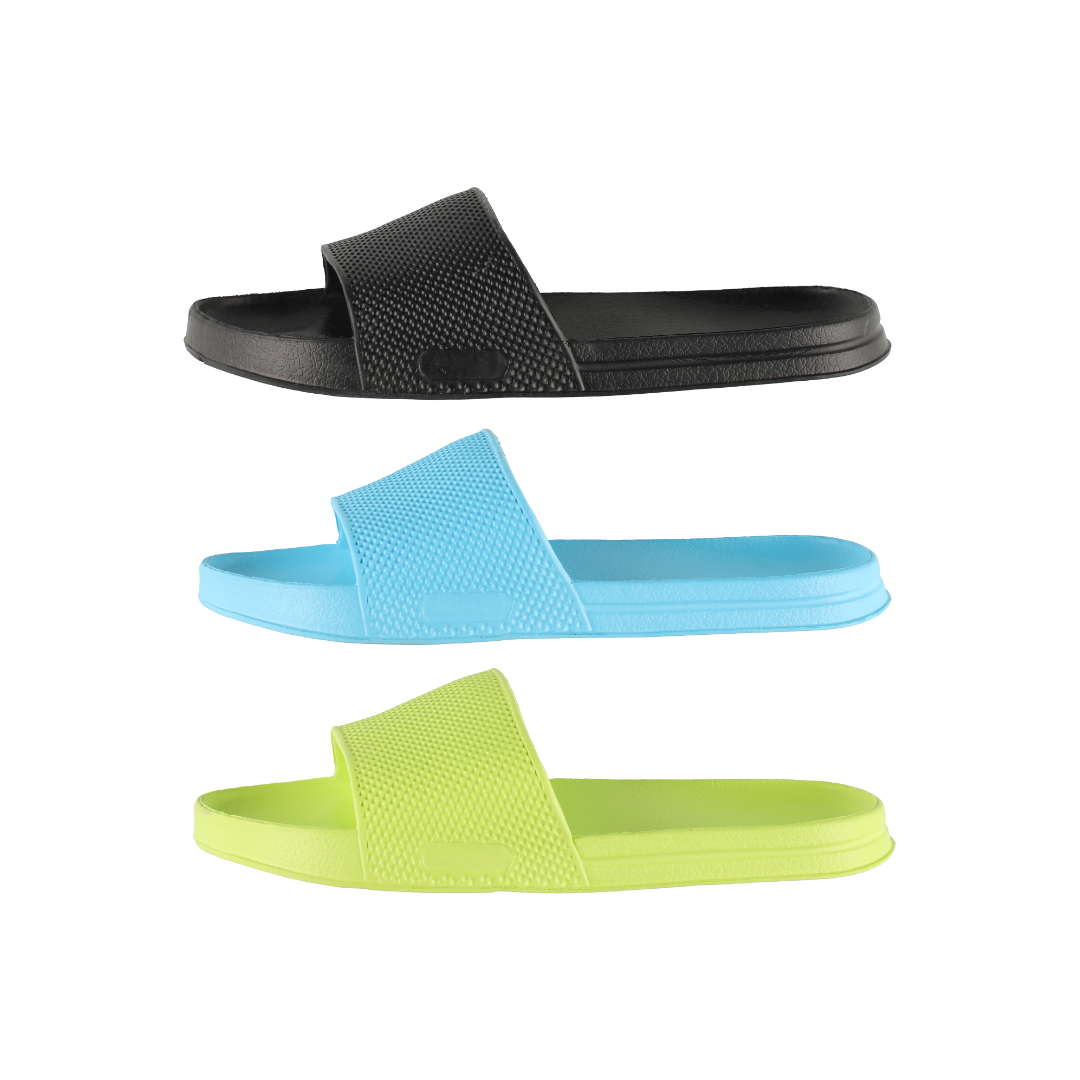 Komfortable sandaler i EVA som tørker raskt og er enkle å skylle rene. Passer til strand, hage og fritid. Finnes i fargene svart, lime og turkis.