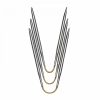 Addi Crasy Trio Med disse ekstra korte rundpinnene kan du strikke både sokker og andre rundstrikkede små ting. Addi CrasyTrio brukes som vanlige strømpepinner, men maskene fordeles på to pinner, og så strikkes det med den tredje pinnen. Den store forskjellen er at det bare blir to overganger pr. omgang. Det gjør det både raskere og lettere å strikke alt fra sokker og til armer. Hver rundpinne er 21 cm lang, med ender i metall som er 85 mm lange. Addi CrasyTrio selges i sett med 3 rundpinner i hvert sett.