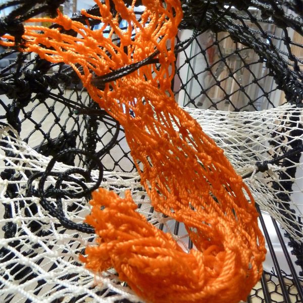 En solid agnpose. Denne er standard i vår nye krabbeteine CL-264266, som du ser på bildet. (den rødorange saken i teina). Festetråd for feste i bunn, og tråd tredd gjennom øverste maske.