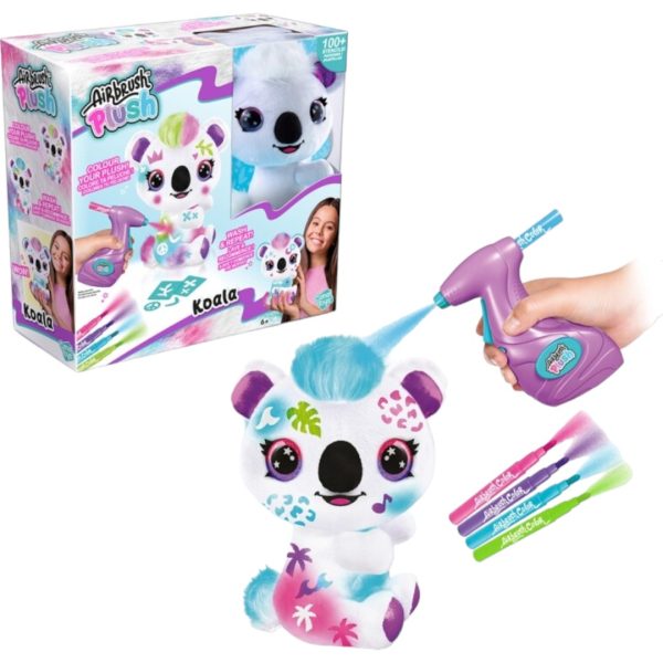 - Inkluderer plysj-koala, 4 airbrush-farger og over 100 resirkulerbare sjablonger.
