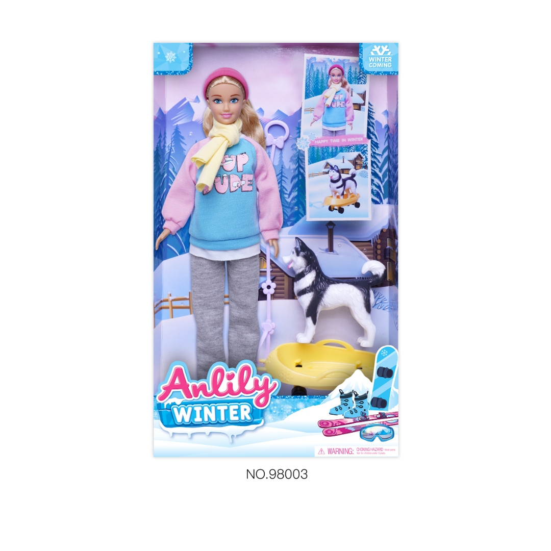 Anlily Vinterdukke med Hund Ut på snøeventyr