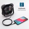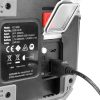 Arbeidslyskaster med oppladbart batteri med 2000 lumen (100%) og en 20 Watt COB-LED. Integrert li-ion-batteripakke med sikkerhetselektronikk – 3,7 V / 4400 mAh / 16.28Wh. To lysstyrkenivåer: 100% lysstyrke (2 timer), 50% energisparemodus (3 timer). Kan lades via en mikro-USB-port – ladetid: ca. 4 timer. Powerbank-funksjon takket være integrert USB-port for smarttelefon osv. Hus av aluminium og beskyttelseshjørner av plast av høy kvalitet gjør den ekstremt støtsikker. Svært fleksibelt bruk takket være et stabilt bøylestativ / bærehåndtak som kan justeres 180. Batterinivåindikator med LED – kontroll av tilgjengelig kapasitet. Beskyttet mot vannsprut (IP64) – kan brukes både innendørs og utendørs