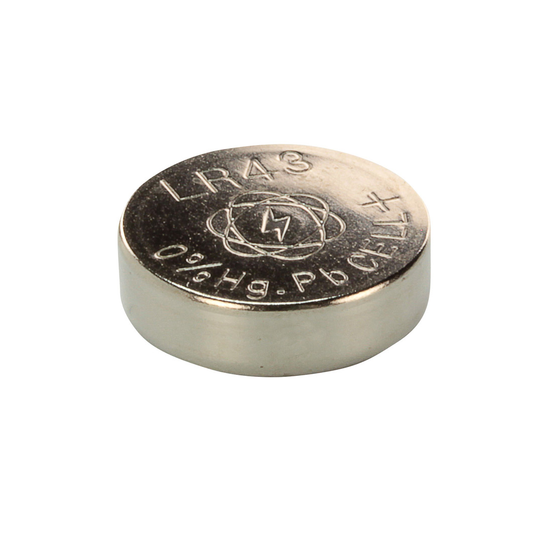 Ansmann LR43 / AG12 / 386A batteri. 1,5 Volt. Mål: 11,4 x 11,4 x 3,9 mm. Vekt: 1 gram. Inneholder ikke kvikksølv.