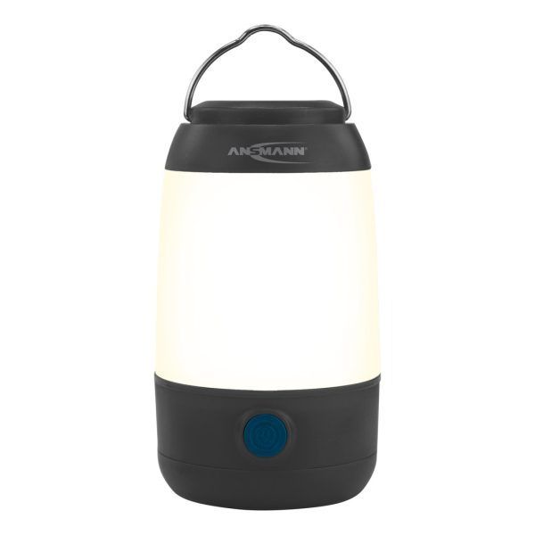 Robust og praktisk campinglampe. Ideell for å gi tilstrekkelig belysning på campingplassen, på festivaler eller hjemme i hagen. Tre lysfunksjoner: 100% lysstyrke / 50% lysstyrke / blinklys. Integrert opphengsbøyle inkludert “S»-krok for feste i telt eller liknende. Lite og hendig format. Robust plasthus. Inkl. 3x alkaliske Micro AAA-batterier fra ANSMANN.