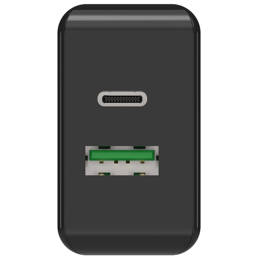 USB-lader med 2 USB-porter og 20 Watt effekt. Integrert Power Delivery (PD) og Quickcharge (QC) hurtigladeprotokoll. Intelligent ladekontroll sørger for en optimalisert lading. Multisafe-teknologi beskytter sluttenhetene dine samt laderen. Egnet for enheter som lades eller drives via USB-A og USB-C. Driftspenning: 100 – 240V AC. Utgang: 5 – 12V DC maks. 3000