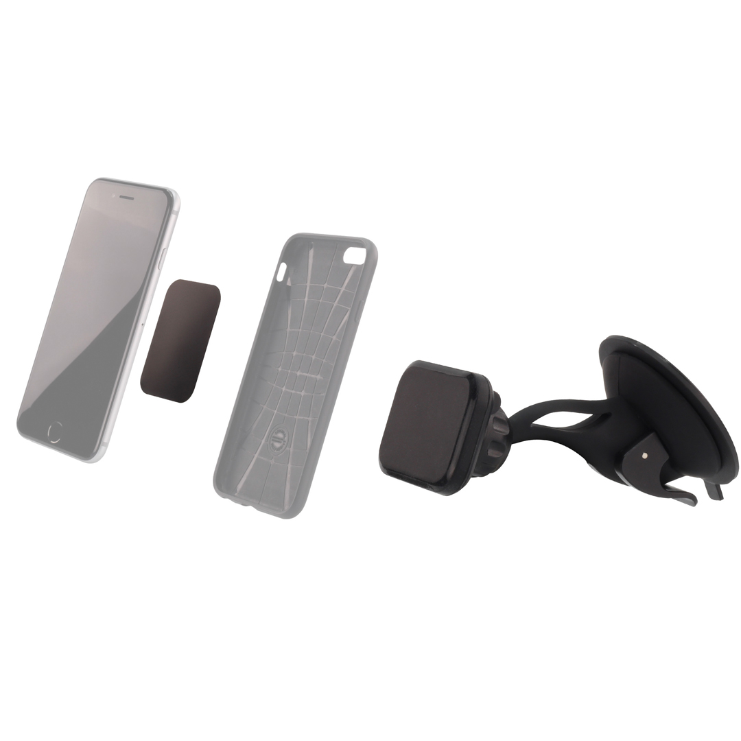 Magnetisk frontruteholder for smarttelefoner, inkl. 2 ultratynne magnetiske metallplater.