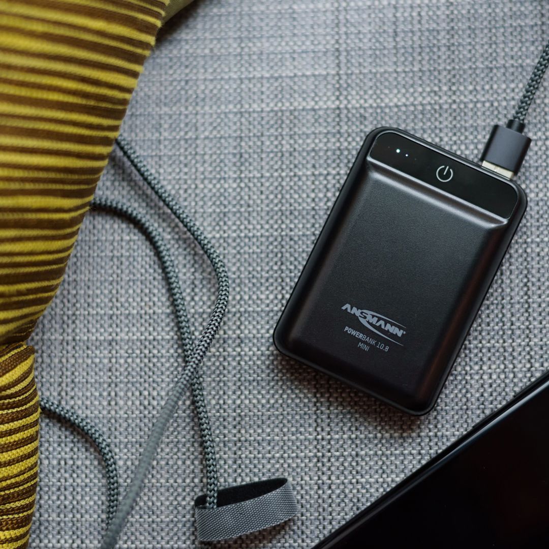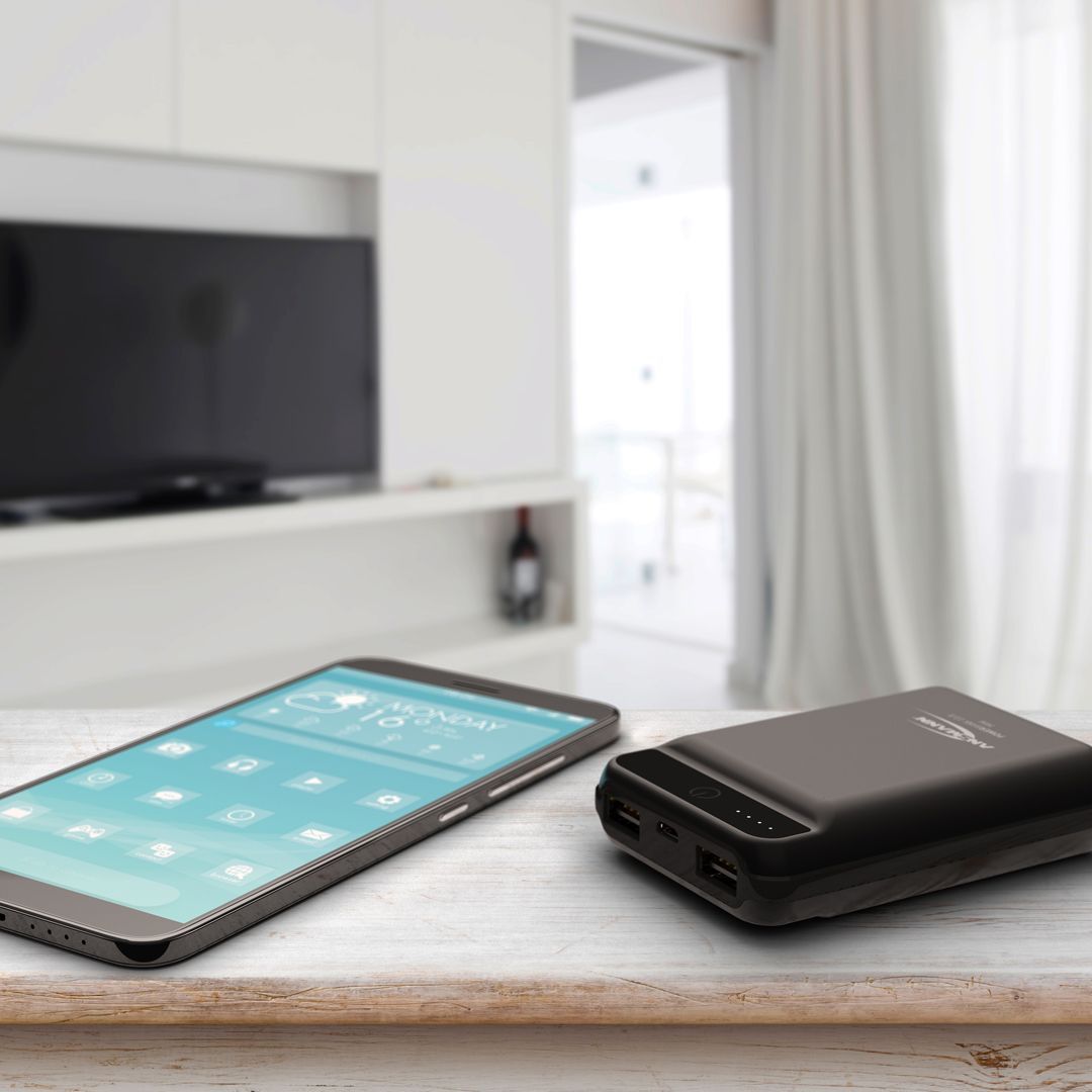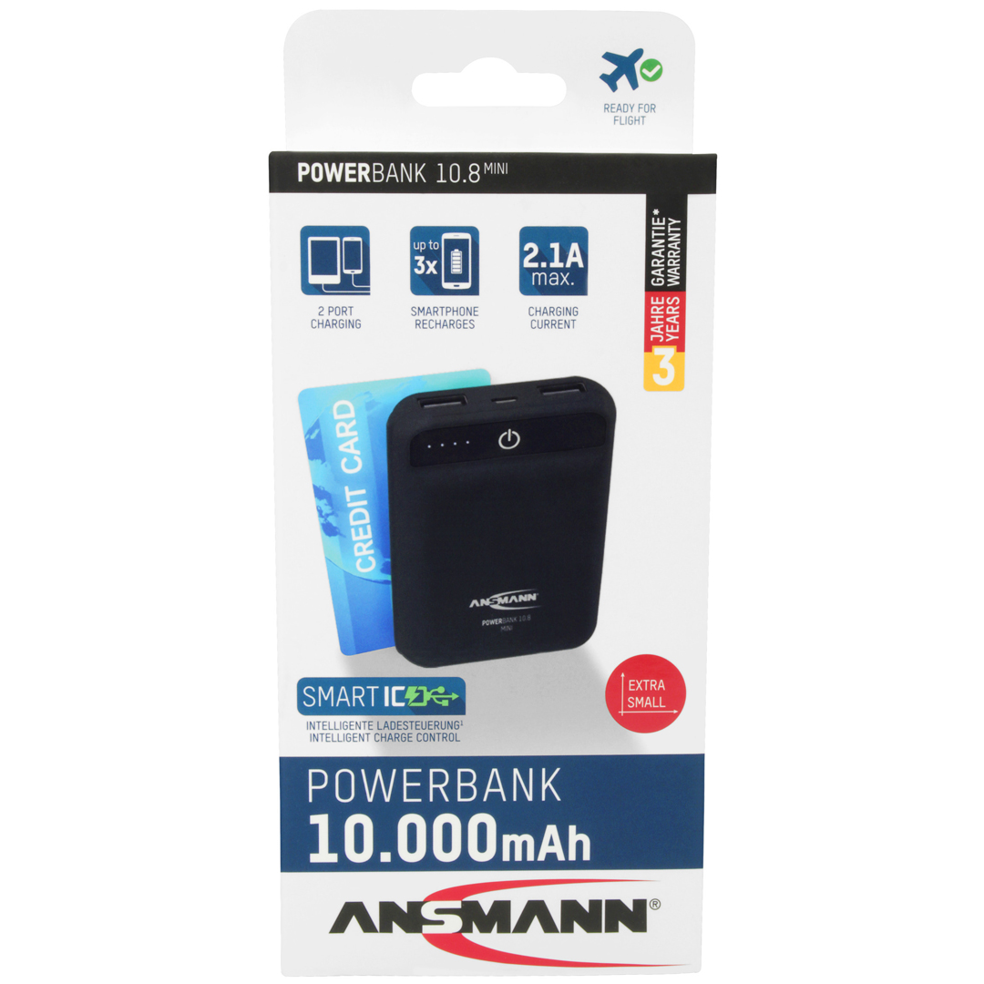 Ansmann powerbank 10.8 mini er kompakt som et kredittkort. 10,000 mAh. 2 utganger a 2,1 Amp.