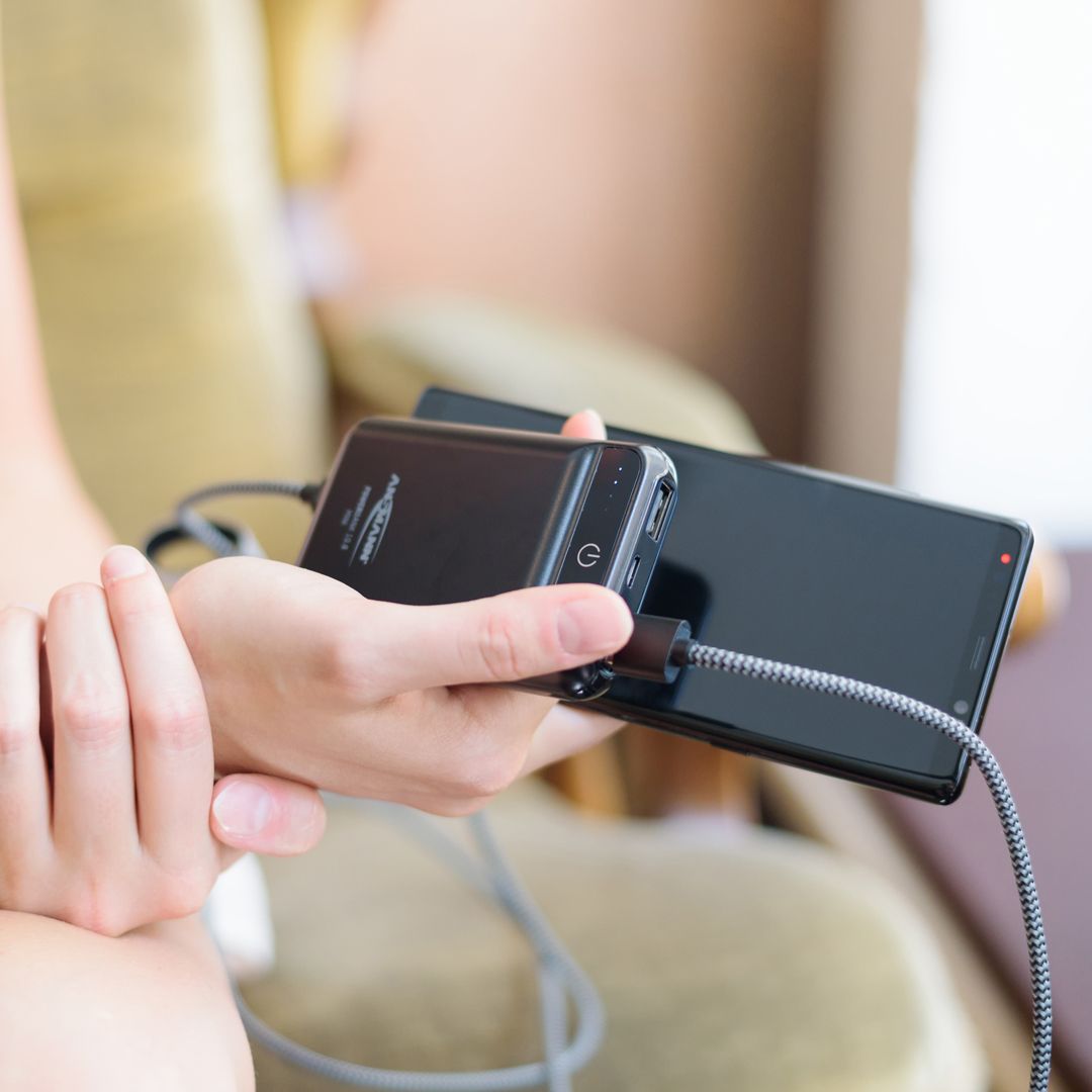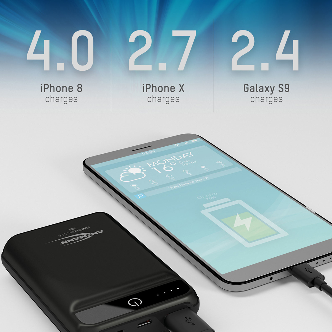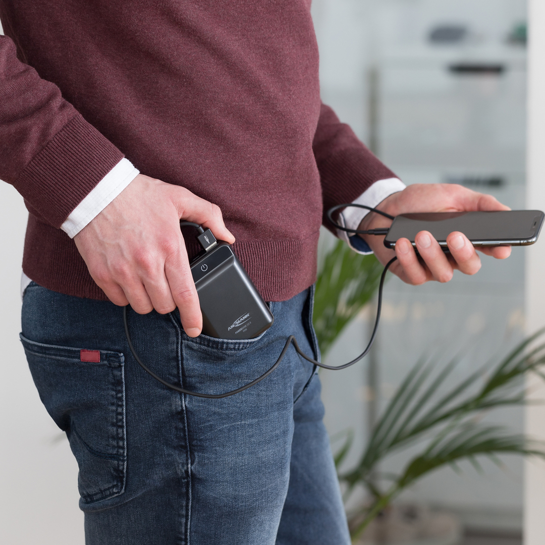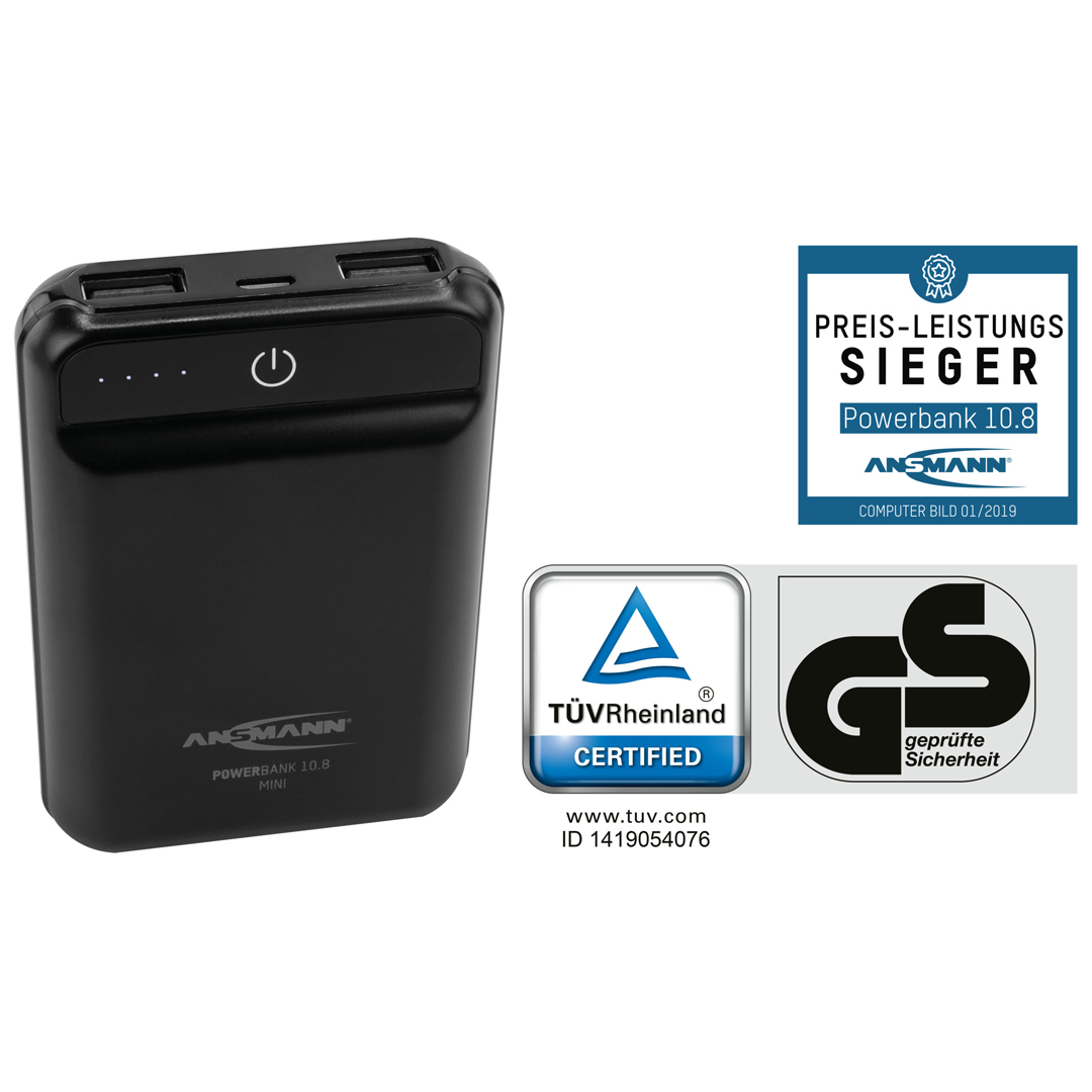 Ansmann powerbank 10.8 mini er kompakt som et kredittkort. 10,000 mAh. 2 utganger a 2,1 Amp.
