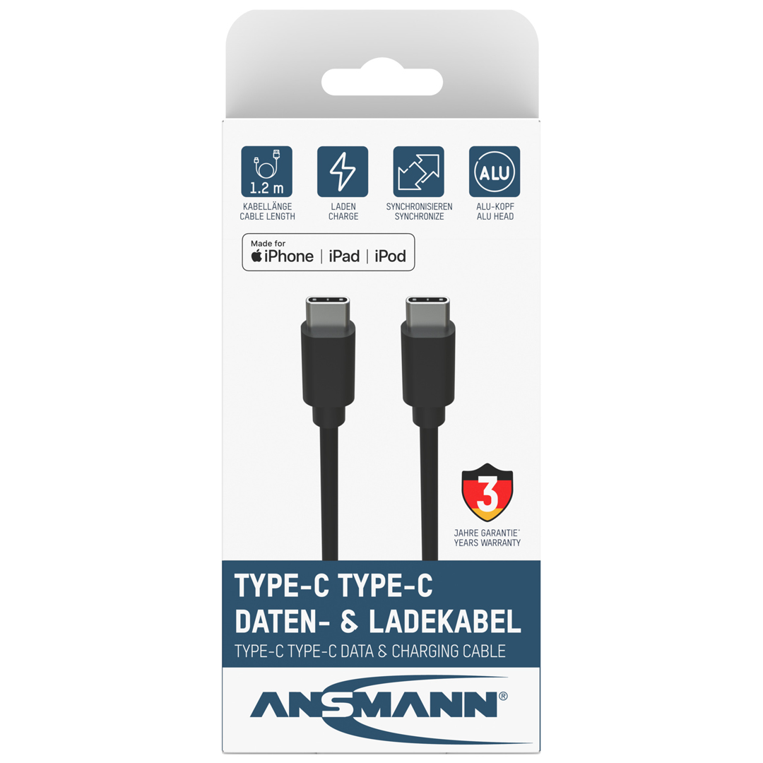 Ansmann usb-c til usb-c kabel 120 cm