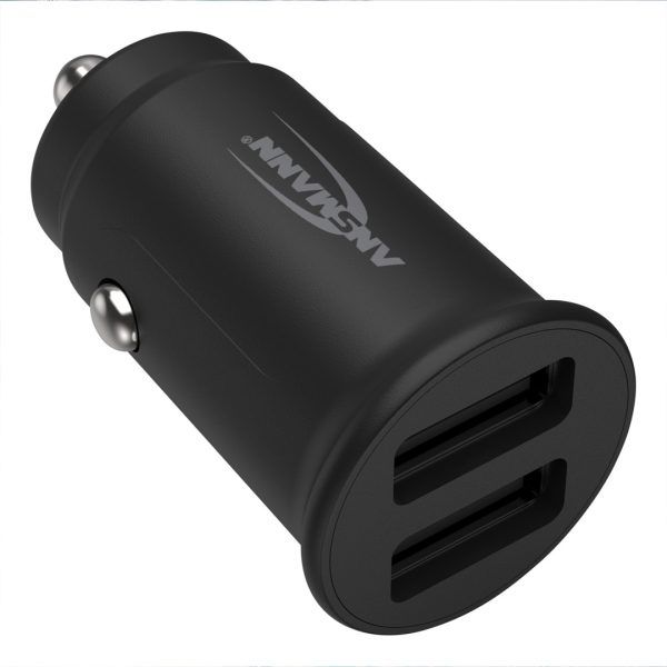 Ansmann USB lader med 2 utganger. Inngang: 12-24 Volt. Utgang 5 Volt max 2400 mA.