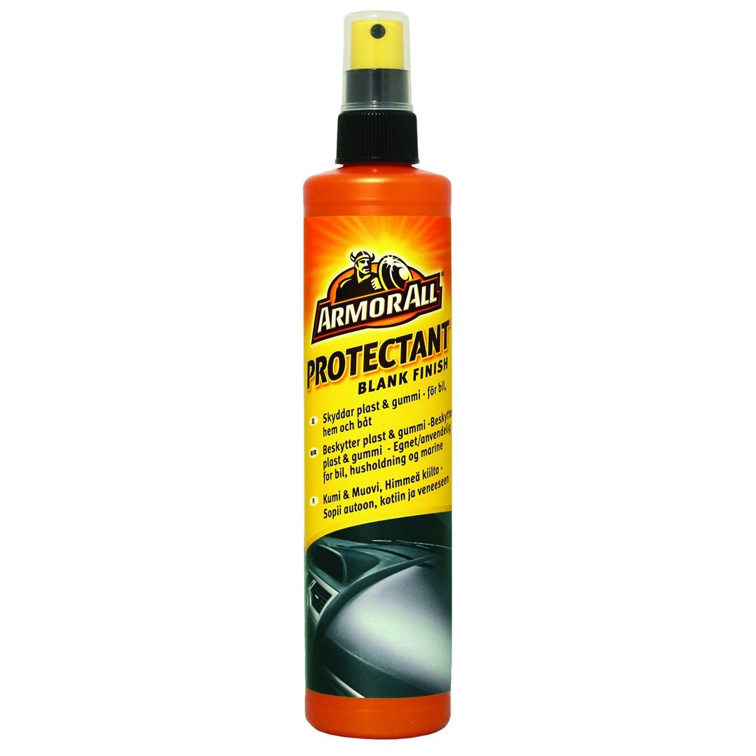 Armor All Protectant er mer enn en vanlig cockpitspray, den trenger inn i og behandler materialets overflate, beskytter mot falming og gir en antistatisk overflate som beskytter mot sol, regn og smuss. Inneholder ikke alkohol eller løsningsmidler. Er ikke brannfarlig, ikke giftig og tærer ikke på materialet. Gir en blank overflate