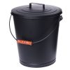 Stilig svart pulverlakkert askebøtte med bærehåndtak og lokk. Høyde 29 cm