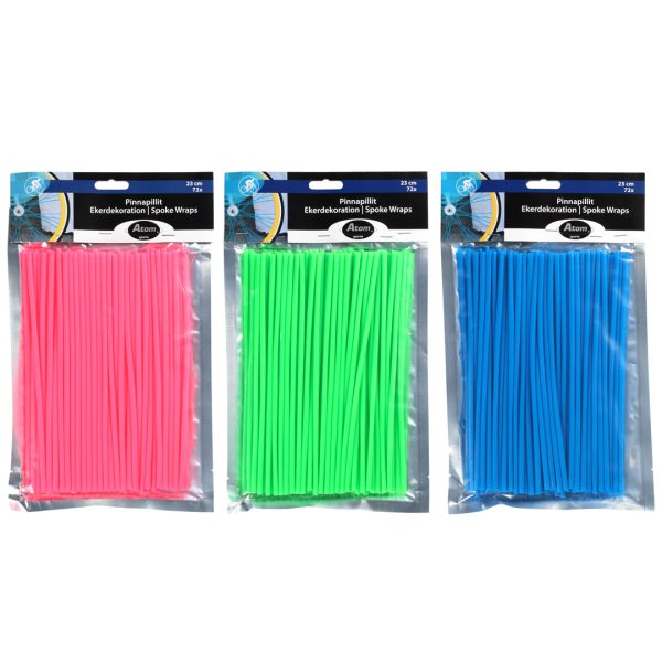 Sykkelspile pynt fra Atom. Lengde: 23 cm pakker a 72 stk. Farger: Rosa,Grønn og Blå. Varen er priset pr stk. Farge plukkes vilkårlig ihht tilgjenge