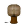 Aura bordlampe i brunbets med brun glasskjerm gir en lun og sofistikert stemning. Den blokklignende trefoten gir lampen stabilitet og et moderne preg, mens den ribbede glasskjermen sørger for et mykt, varmt lys. En perfekt kombinasjon av funksjon og estetikk som gjør seg godt i stue, soverom eller på hjemmekontoret. Lampen har bryter på ledning og passer til standard E27-pærer.