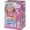 S?steren elsker ? style h?r. Hver dag finner hun opp nye frisyrer til kvalitetsh?ret sitt. Flettene og halene er stylet og dekorert med ulike h?rtilbeh?r. Spennene, strikkene og h?rforlengelsene i forskjellige farger passer perfekt til antrekket hennes. BABY born liker spesielt de rosa og lilla h?rforlengelsene og vil alltid trekke dem ut av s?sterens h?r. Det kan godt f?re til at s?steren feller noen dukket?rer. Men bare hvis hun tidligere har drukket vann fra flasken sin. Den elegante jenta har en kjole med skj?rt i jeansstil og en asymmetrisk topp med en Carmen-krage. Den passer til de gr? leggingsene med rosa striper p? siden og de r?d-oransje joggeskoene. S?steren er superbevegelig og kan st? alene p? grunn av de fleksible kn?rne. Og hun kan bli badet i BABY born badekaret. BABY born s?ster med seks livaktige funksjoner inspirerer til variert rollespill og lek, som fremmer fantasien og st?tter utviklingen av barnets sosiale ferdigheter og verdier. Fra 4 ?r. Inkluderer: – BABY born s?ster 43 cm med kjole, leggings og sko – flaske, h?rb?rste, 2 spiralstrikk, 2 h?rklipp, 2 klipp med h?rforlengelser og 1 vennskapsarmb?nd hver for barn og dukke