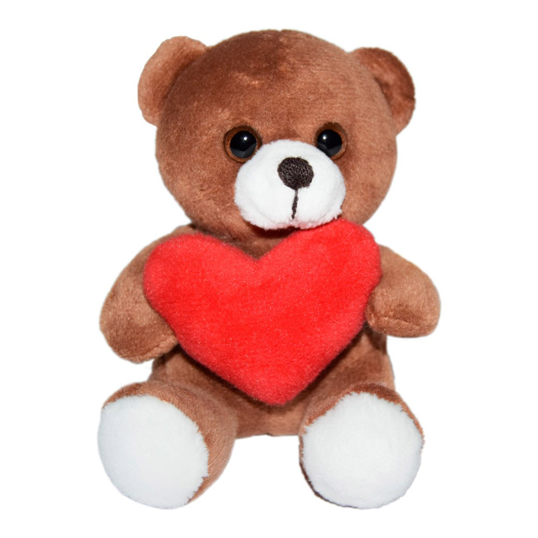 Koselig bamse i plysj med stort hjerte. Mål: 10 cm