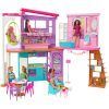 Moderne Barbie-dukkehus med to etasjer og seks lekeområder: soverom, bad, kjøkken, spisestue, stue og garderobe. Innebygde lekefunksjoner som hengestol som fungerer som heis og en vegg som kan vippes opp for filmkveld eller fest. Over 30 tilbehør følger med, inkludert valp og møbler, og huset kan brettes sammen for enkel lagring.