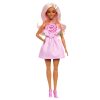 Barbie Fashionistas dukken med stroppeløs rosekjole kombinerer moderne stil med en petite kroppstype. Dukken har pastellrosa hår med perlebesatt hårspenne, og antrekket fullføres av rosa stroppehæler. Den er laget med minst 59 % plantebasert plast.