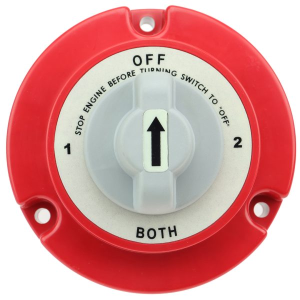 Kombinert hovedstrømbryter og batterivelger for to batteribanker. Maks belastning er 250A/360A kortvarig.