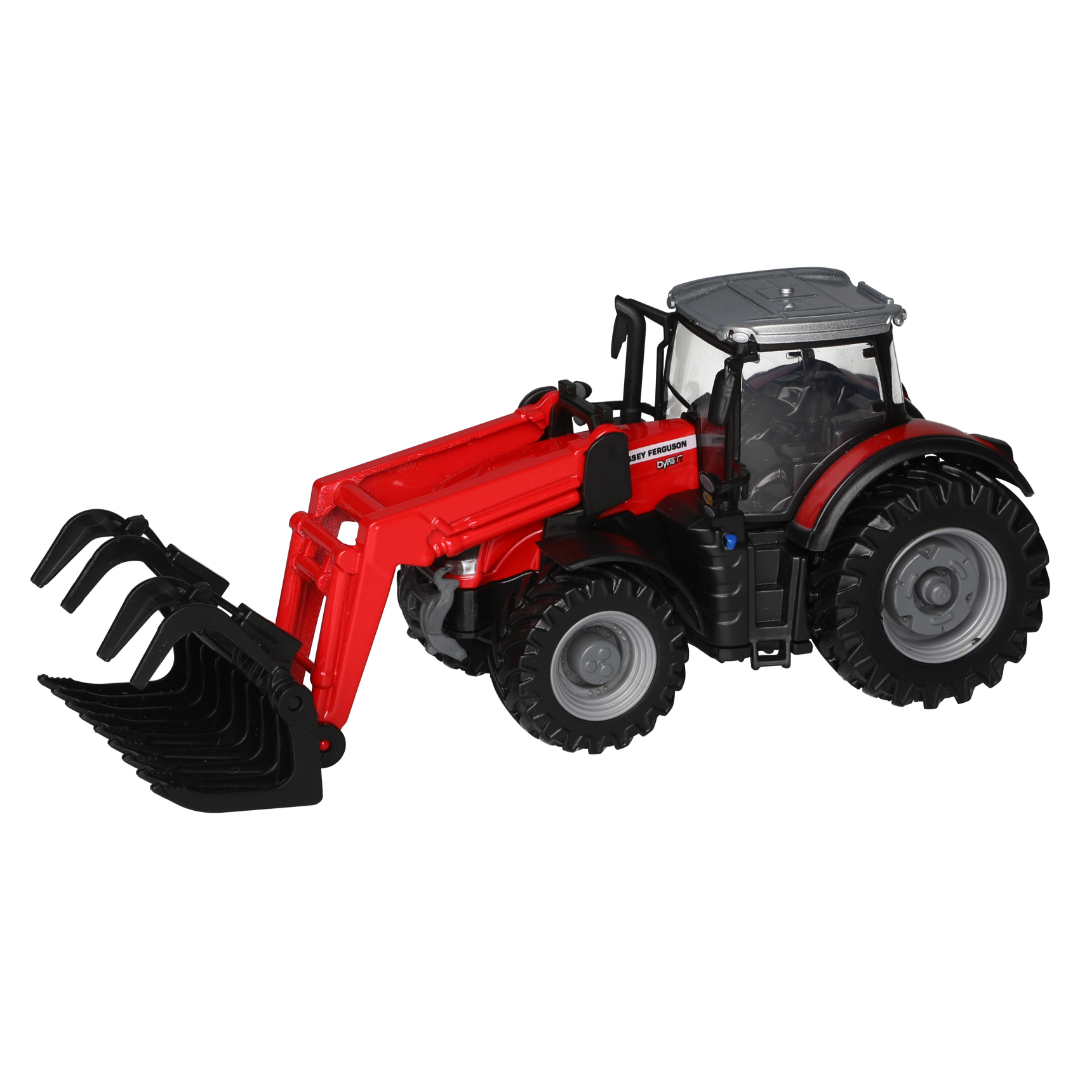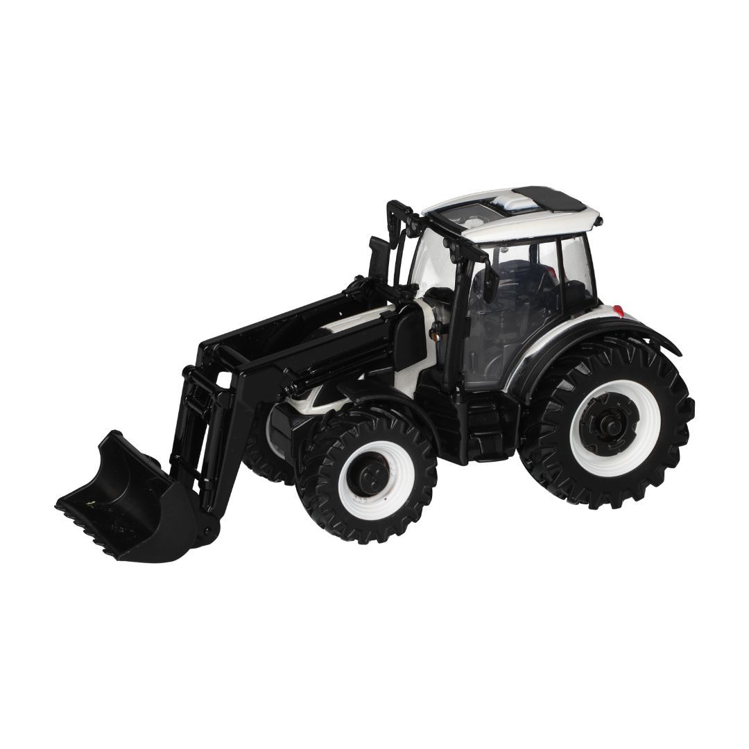 Detaljert Farmland traktor fra Bburago med frontlaster. Rød modell i solid utførelse med realistiske detaljer. Passer både som leke og samleobjekt.
