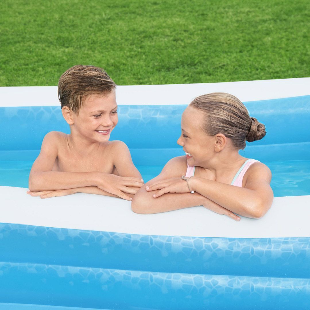 Stort flott familiebasseng fra Bestway. Enkelt å montere og klar for bading i løpet av minutter (+fylletid) Den spesielle formen gjør at basenget passer for hele familien. Kos deg i dette bassenget i sommer med familieog venner.