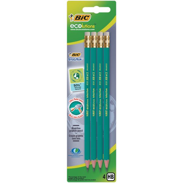BIC Ecolutions Evolution er en grafittblyant med svært slitesterkt bly og er laget av gjenvunne materialer. BIC Ecolutions Evolution egner seg godt for skriving i hverdagen. Det komfortable sekskantede grepet gir deg en stø hånd slik at du kan skrive uten å glippe taket, noe som gir ren og jevn skrift. Blyanten har bly som gir jevne streker og sørger for at notatene du tar på skolen eller i møter, fremstår som rene og ryddige. Blyet er dessuten svært bruddsikkert, slik at du kan skrive fritt, uten å bekymre deg for at det kan knekke. Spesifikasjoner: Grafittblyant. Laget av gjenvunne materialer. Blyet gir jevn skriving. Komfortabelt sekskantet grep for enkel skriving. Ekstremt bruddsikre. Uten tre og flissikre. Blykvalitet: HB.