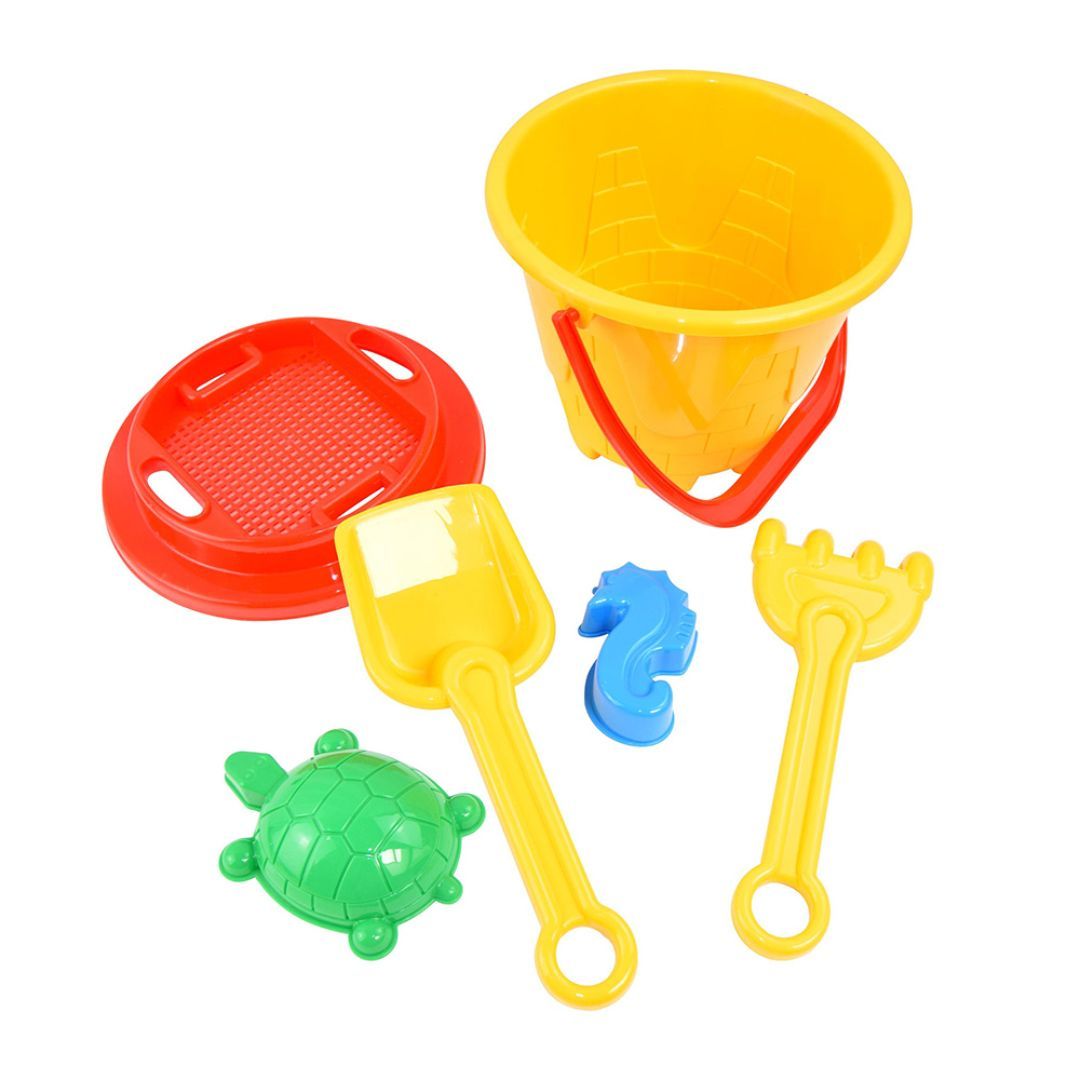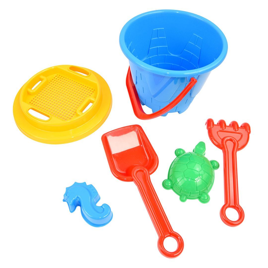 De solide plastdelene tåler aktiv lek og saltvann, mens de lyse fargene gjør settet lett å finne i sanden. Passer perfekt for barn fra 18 måneder og oppover.