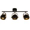 Bow takspot med tre justerbare lampehoder i svart metall med detaljer i matt messing og brunt lær. Gir fleksibel belysning og passer godt i stue, kjøkken eller gang.