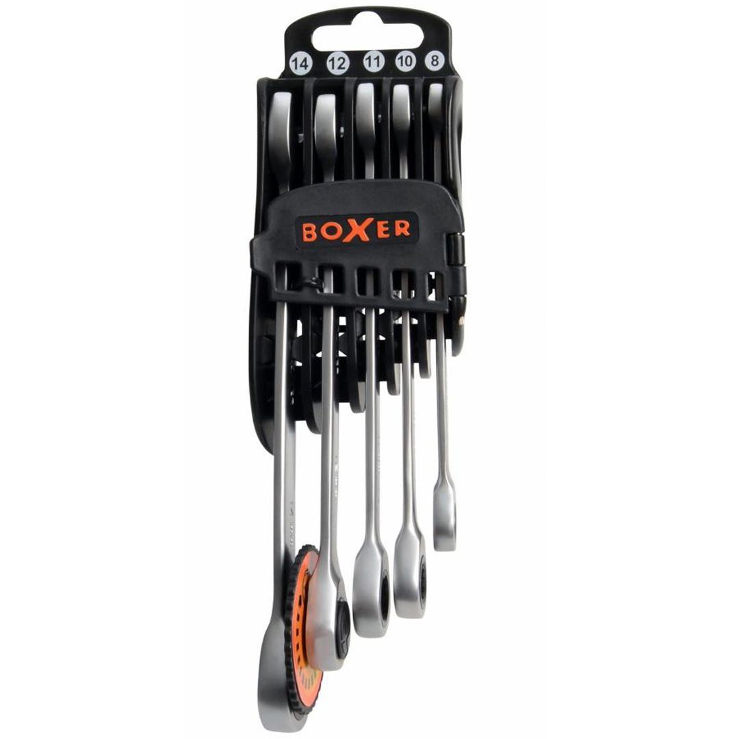 5 delers skrallenøkklsett med 72 tenner. Inneholder: 8, 10, 11, 12 & 14 mm