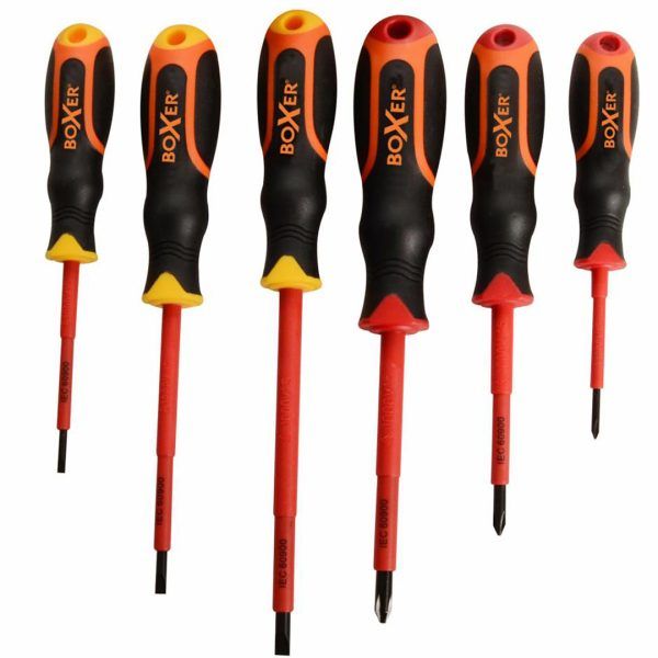6 deler skrutrekkersett i CrV-stål med isolert håndtak VDE / GS godkjent til 1000V.