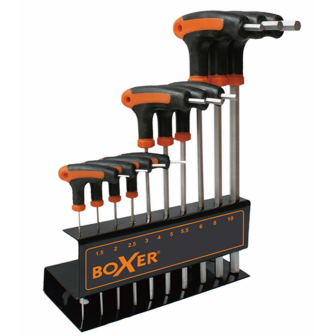 Unbraco T-nøkkelsett 10 størrelser. I CrV-stål. Størrelser: 1,5-2-2,5-3-4-5-5,5-6-8-10 mm. Inkl. praktisk veggholder. Med 2-komponentgrep for bedre komfort.