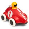 Bare utseende vil få fingrene til å klø etter å ta tak i den, kjenne på den og sende den av gårde på gulvet hjemme. Trykk ned føreren så drar bilen i vei! Trykk og kjør-racerbilen tilbyr moro og underholdning som også stimulerer aktivitetsbehov og finmotorikk. Fra 12 mnd.