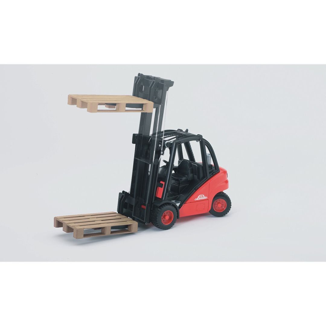 Denne tøffe gaffeltrucken er fra den tyske kvalitetsleverandøren Bruder. Kjøretøyene og tilbehøret har unik og virkelighetstro design med flotte detaljer. Denne gaffeltrucken kommer med to paller, og trucken kan løfte dem i en en-hånds operasjon.