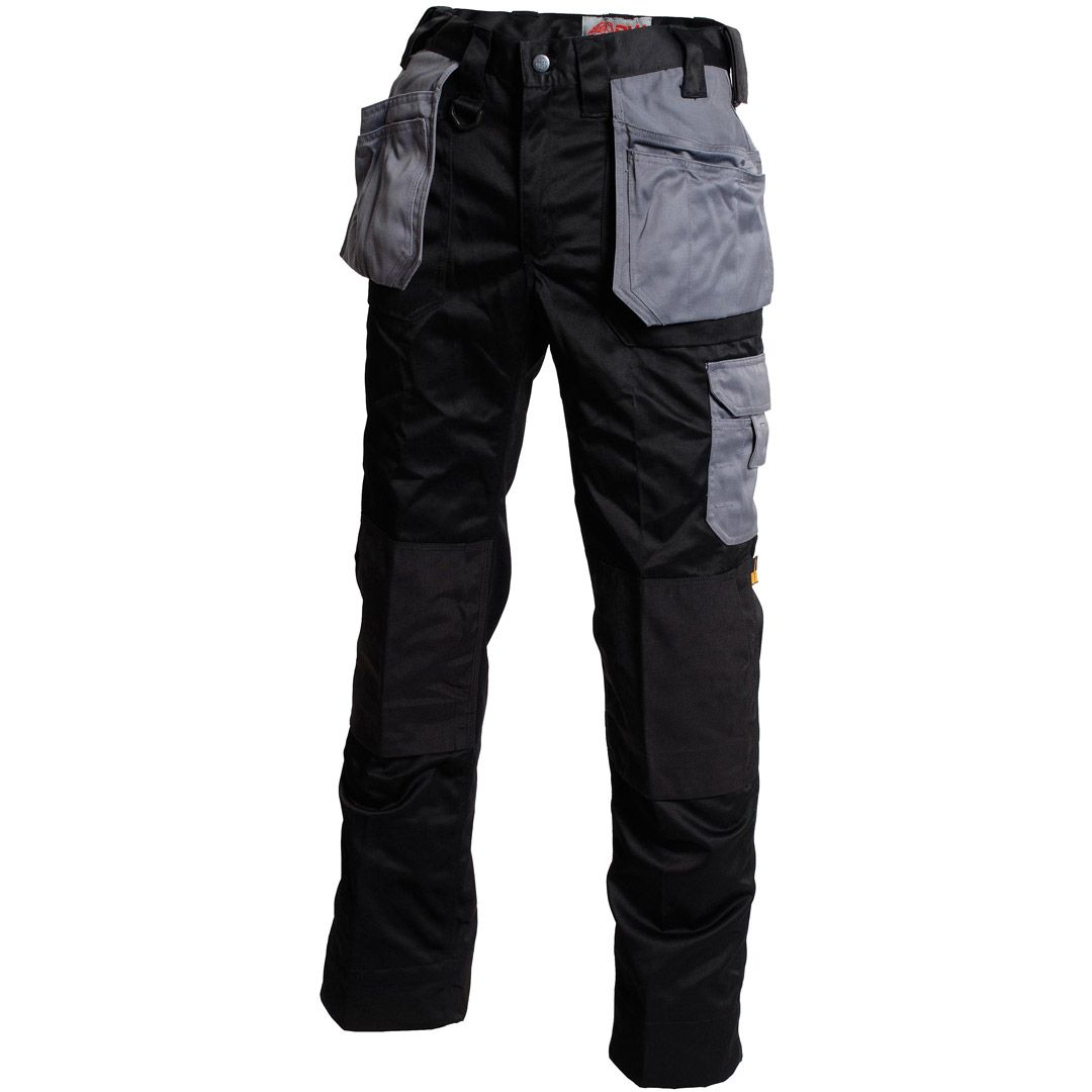 Bulldog HĂĽndverkerbukse i 65% polyester og 35% bomull, 310 gr/m2. 2 innfellebare spikerlommer. 2 stikklommer og 2 baklommer. LĂĽrlomme med mobiltelefon lomme. Tommestokklomme. Hammerholderfeste i Cordura – pĂĽ begge sider. Kneputelommer i Cordura med formsydde knĂŚr. 7 cm oppbrett pĂĽ ben gjør at benlengden enkelt kan justeres. Triple sømmer for ekstra styrke.