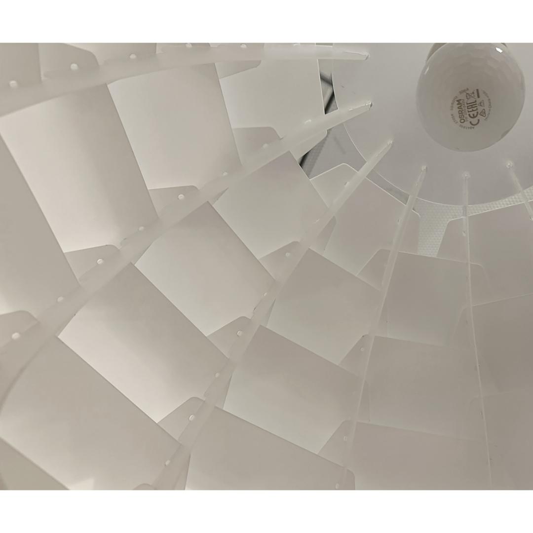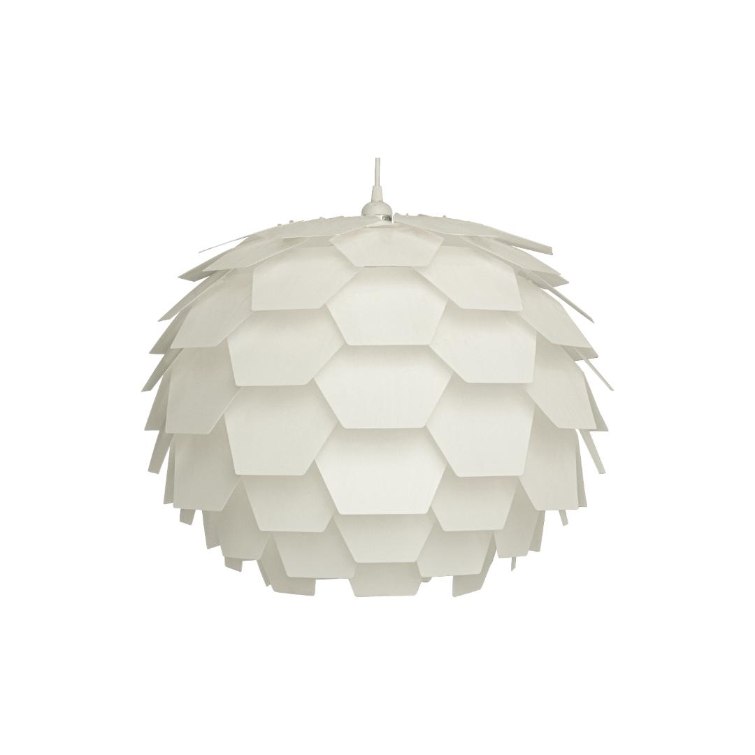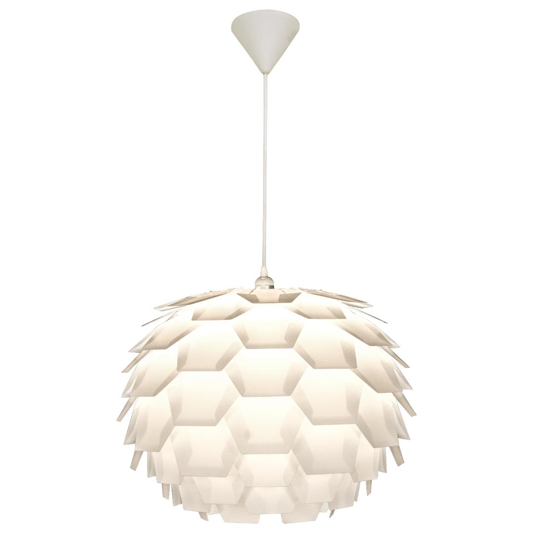 Carpatica taklampe i hvit plast har et rent og klassisk uttrykk som passer inn i alle typer interiør. Den store skjermen på 60 cm gir godt med lys og gjør lampen ideell over et større spisebord, i stuen eller i et rom med høyere tak. Designen er enkel og elegant, med en glatt overflate som gir en tidløs følelse. Lampen monteres i krok og kan justeres i høyden med den 130 cm lange ledningen, slik at du får riktig lyssetting uansett rom.