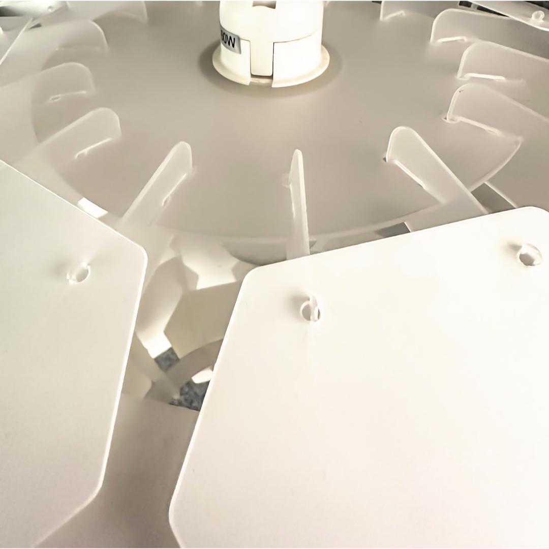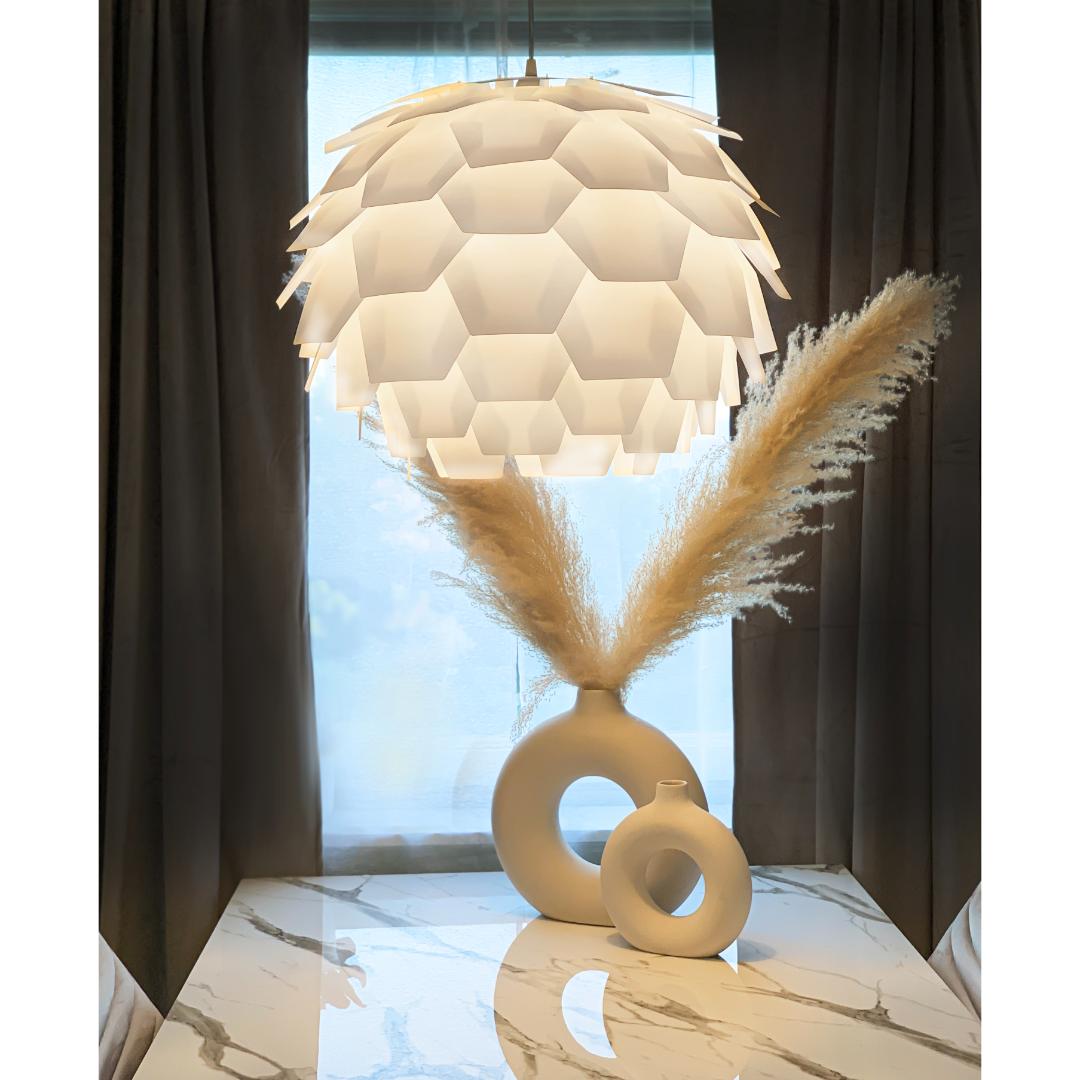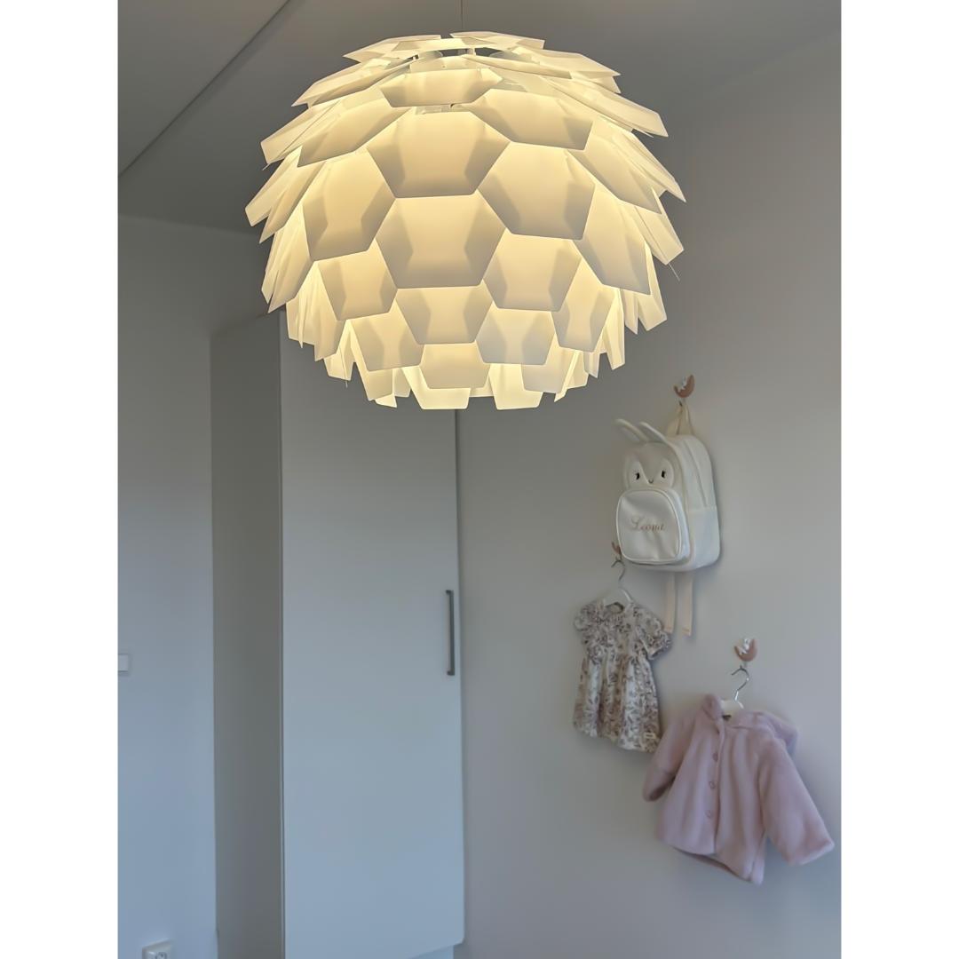 Carpatica taklampe i hvit plast har et rent og klassisk uttrykk som passer inn i alle typer interiør. Den store skjermen på 60 cm gir godt med lys og gjør lampen ideell over et større spisebord, i stuen eller i et rom med høyere tak. Designen er enkel og elegant, med en glatt overflate som gir en tidløs følelse. Lampen monteres i krok og kan justeres i høyden med den 130 cm lange ledningen, slik at du får riktig lyssetting uansett rom.
