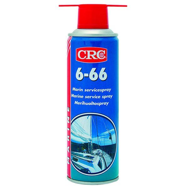 CRC 6-66 Marine. Et universalmiddel for beskyttelse av metaller og malte flater som er utsatt for vann, fukt og saltholdig luft, eksempelvis ombord i båter. Danner en tynn, klar, usynlig film som fortrenger vann og fukt, smører, rengjør og beskytter mot korrosjon. Til bruk i alle slags båter, f.eks. for å starte og beskytte våte innen- og utenbordsmotorer, for å beskytte elektrisk utstyr mot fukt for å smøre og beskytte hengsler, ventiler, låsekabler, kulelager og andre metalldeler.