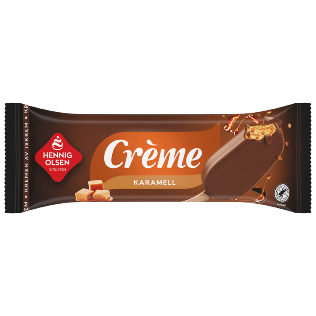 Creme seriens bestselger. En premium karamellis med karamellsaus og myke karamellbiter med sjokoladeovertrekk. En is for karamellelskere som kun nøyer seg med det aller beste. Med RFA sertifisert kakao.