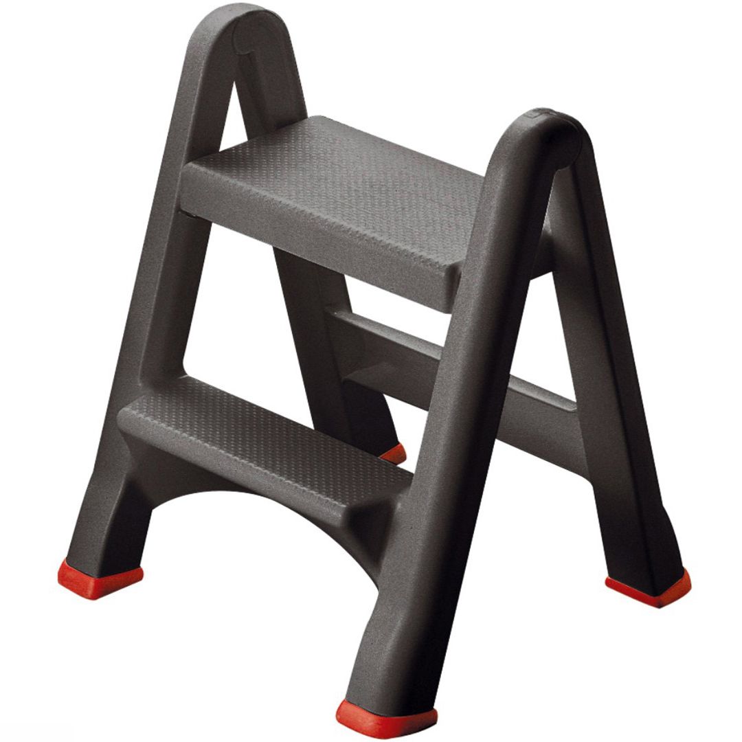 Curver to trinns stige. Høyde fra øverste trinn til gulv = 43 cm. Maksbelastning 150 Kg.