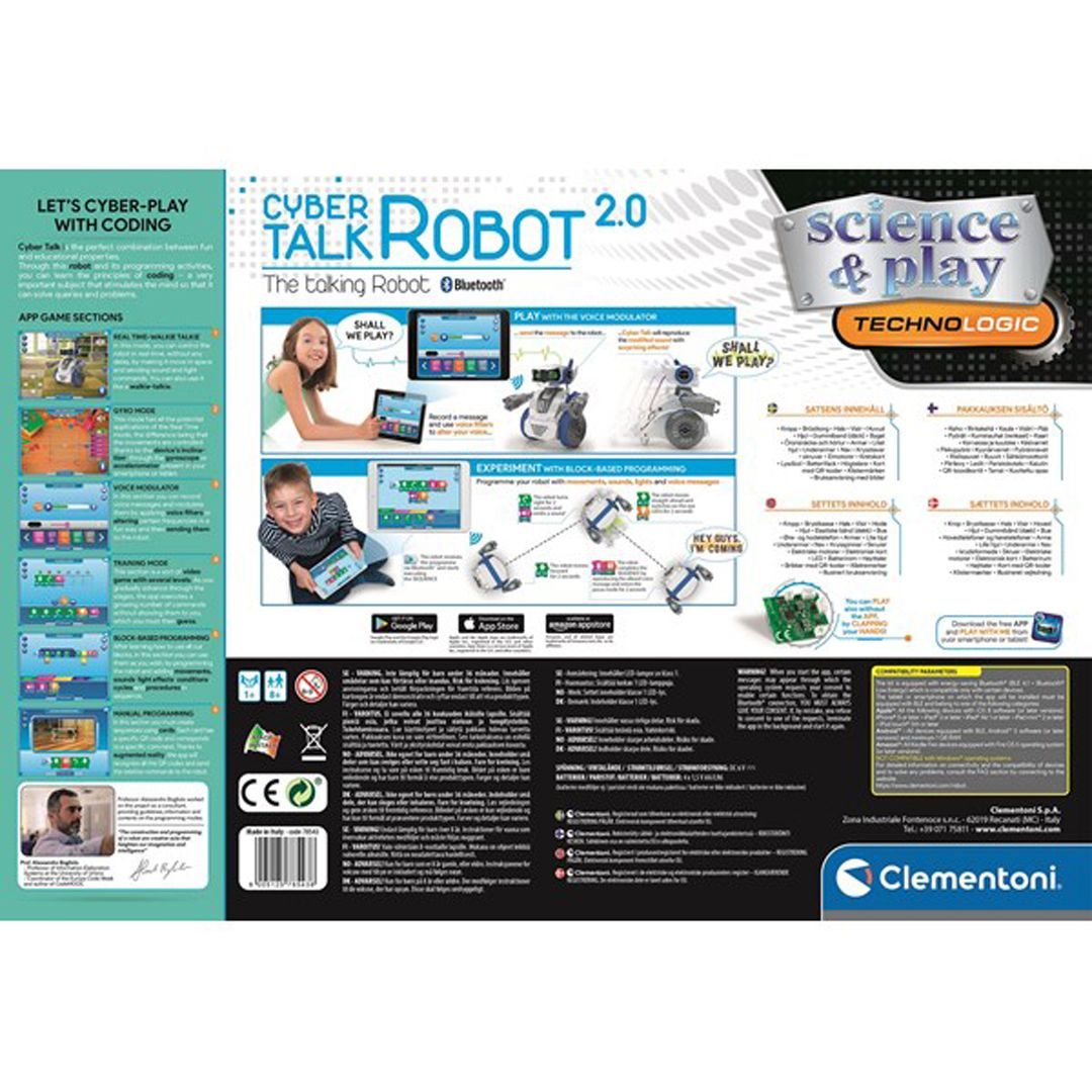 Til alle teknologientusiaster: et vitenskapelig sett som du ikke kan gå glipp av! En utrolig robot som barn kan montere, utstyrt med en bluetooth-modul og imponerende fem forskjellige spillmoduser. Last ned den gratis Clementoni-appen for nettbrett og smarttelefoner og lær hvordan du programmerer robotens bevegelser og lys- og lydeffekter! Du vil kunne vise en simulering av den programmerte kommandoen når den kjøres på enheten din og for å kontrollere roboten i sanntid, akkurat som om du brukte en fjernkontroll. For å gjøre det enda morsommere å spille, kan robotens vei stilles inn manuelt via et kretskort.